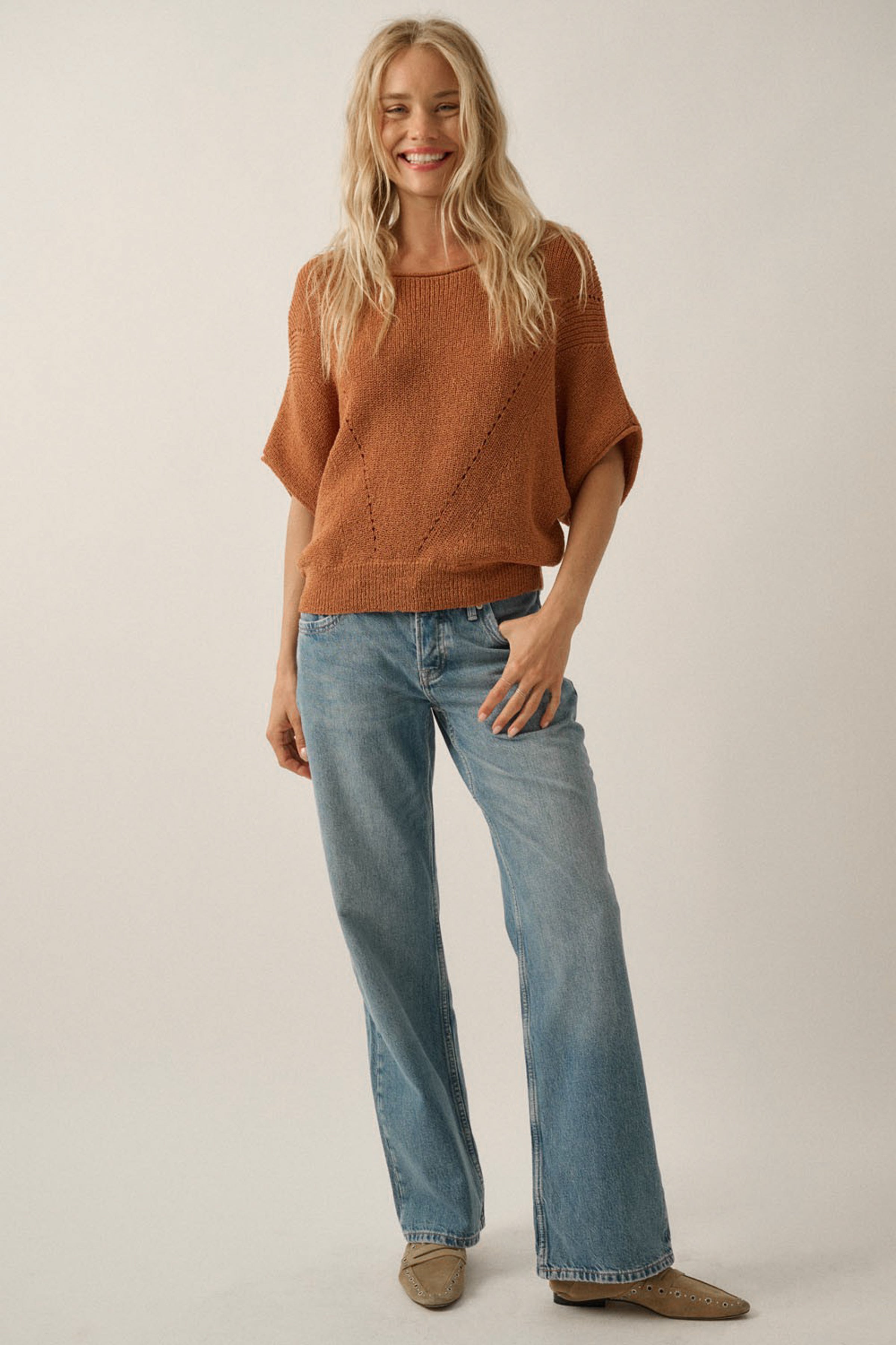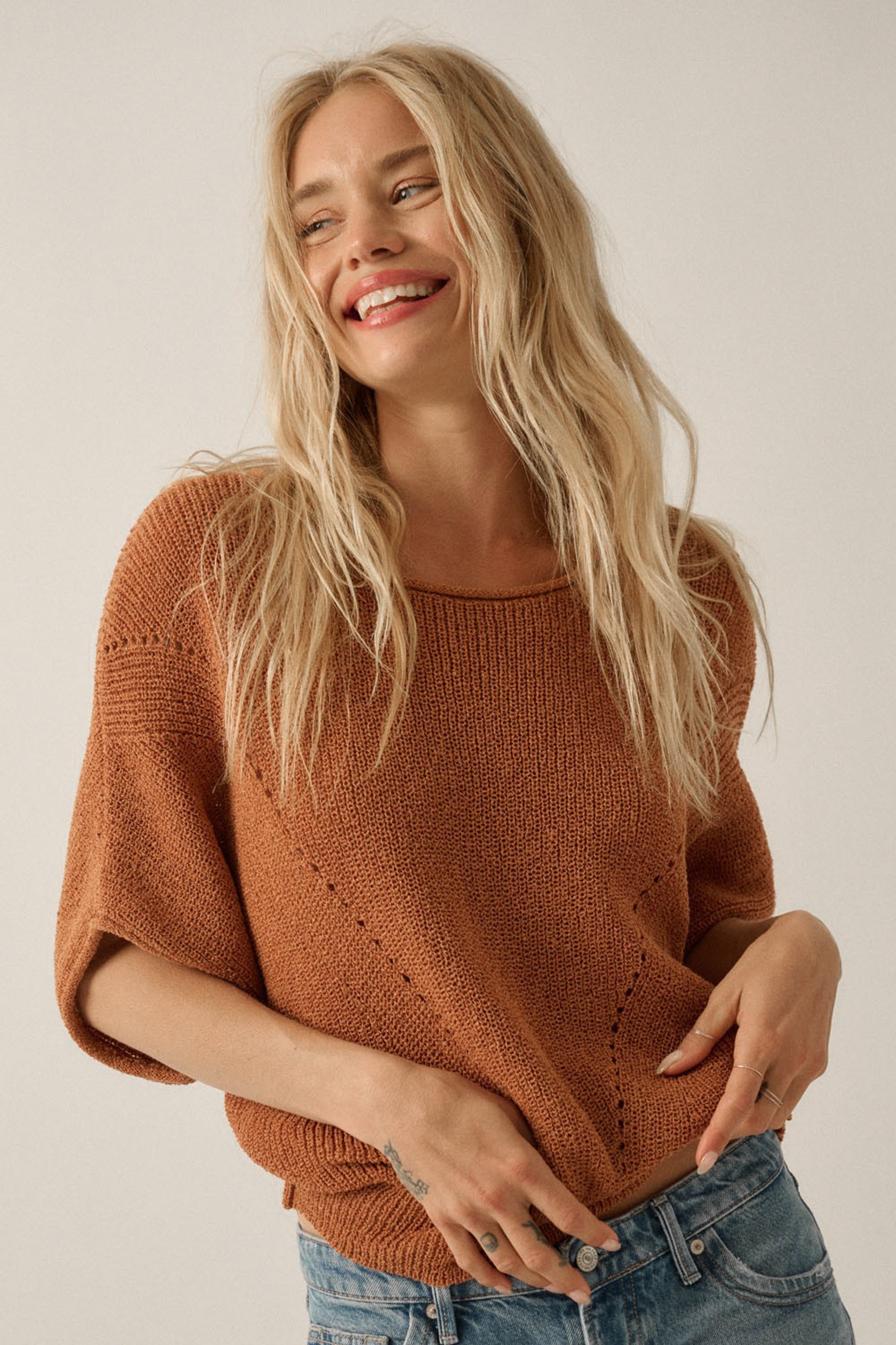 Rust knit sweater.