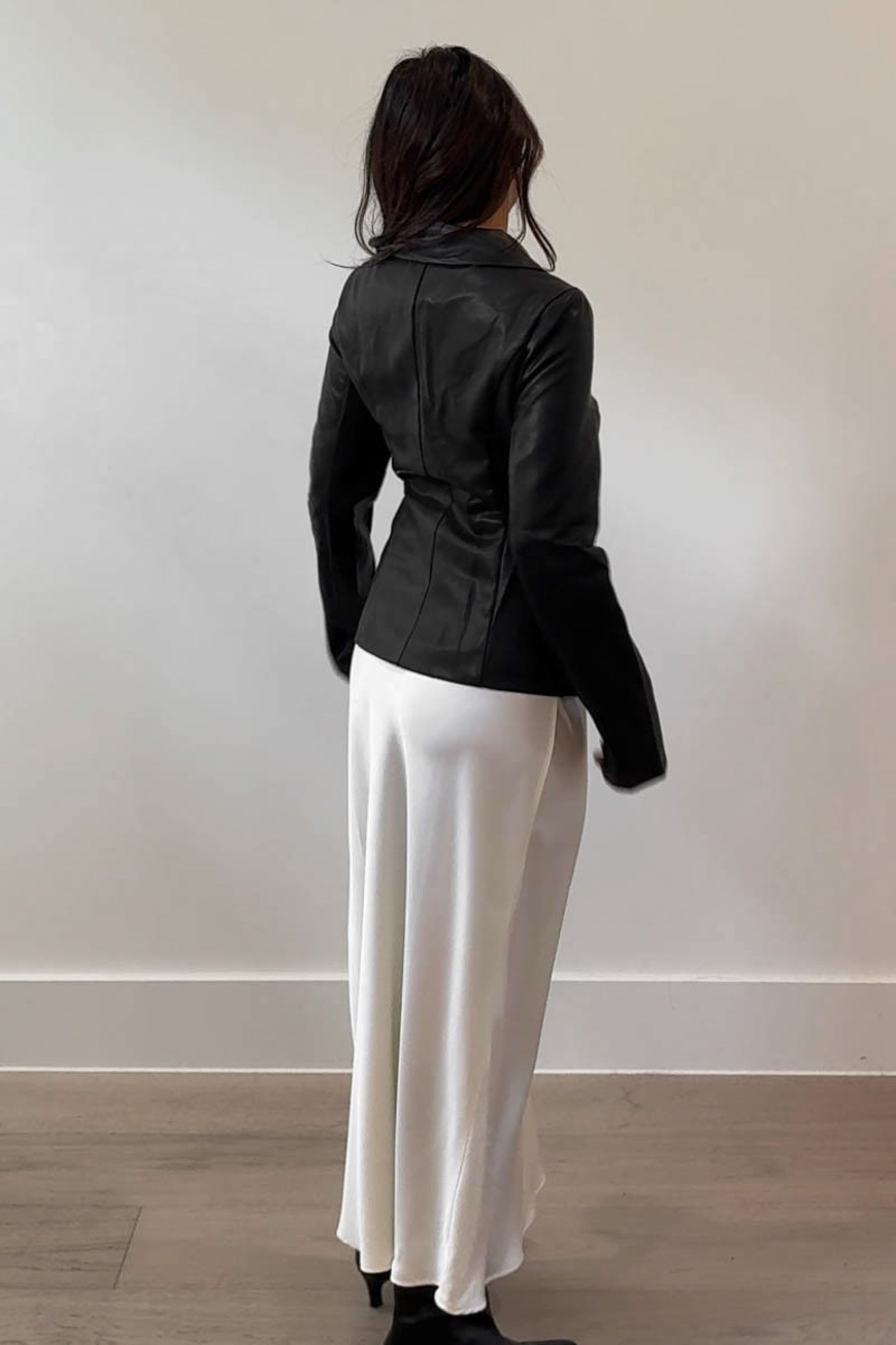 The Vanessa Jacket features front welt pockets at the chest and waist and cinched waist. The fitted waist design accentuates your silhouette, making it an ideal choice for both casual outings and professional settings.