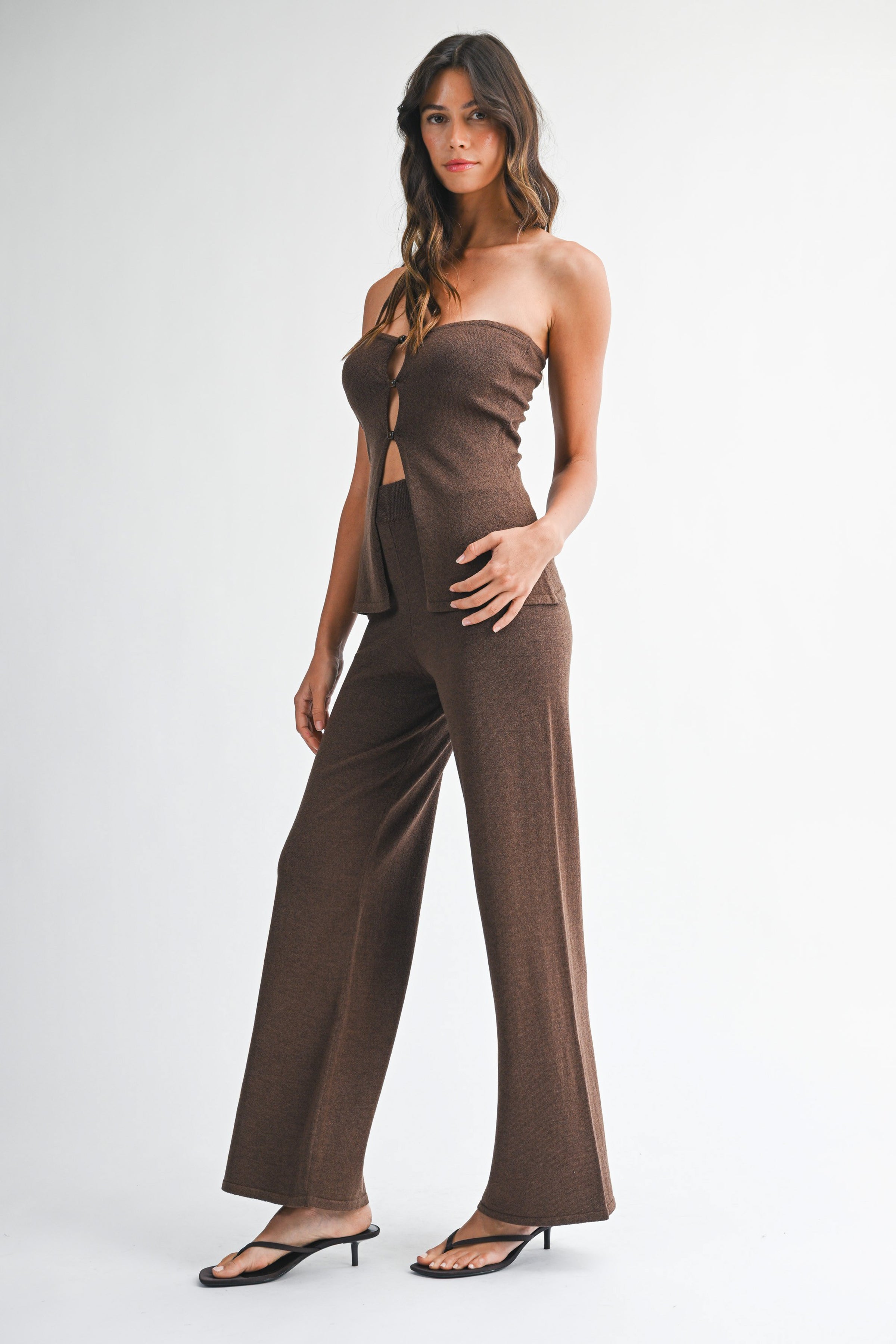 Chocolate brown knit pant.
