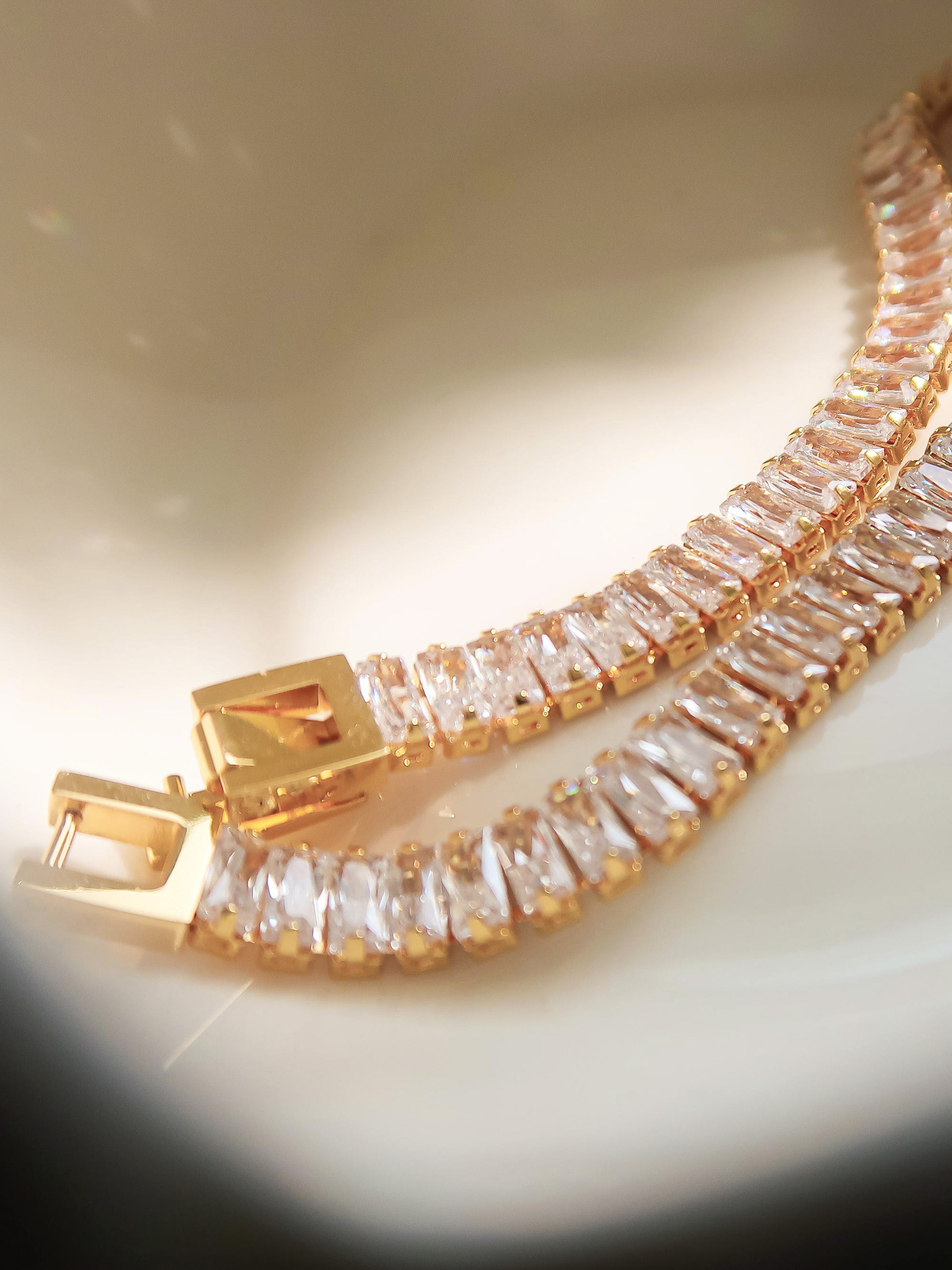 Material: 18K gold plated stainless steel. Cubic zirconia.