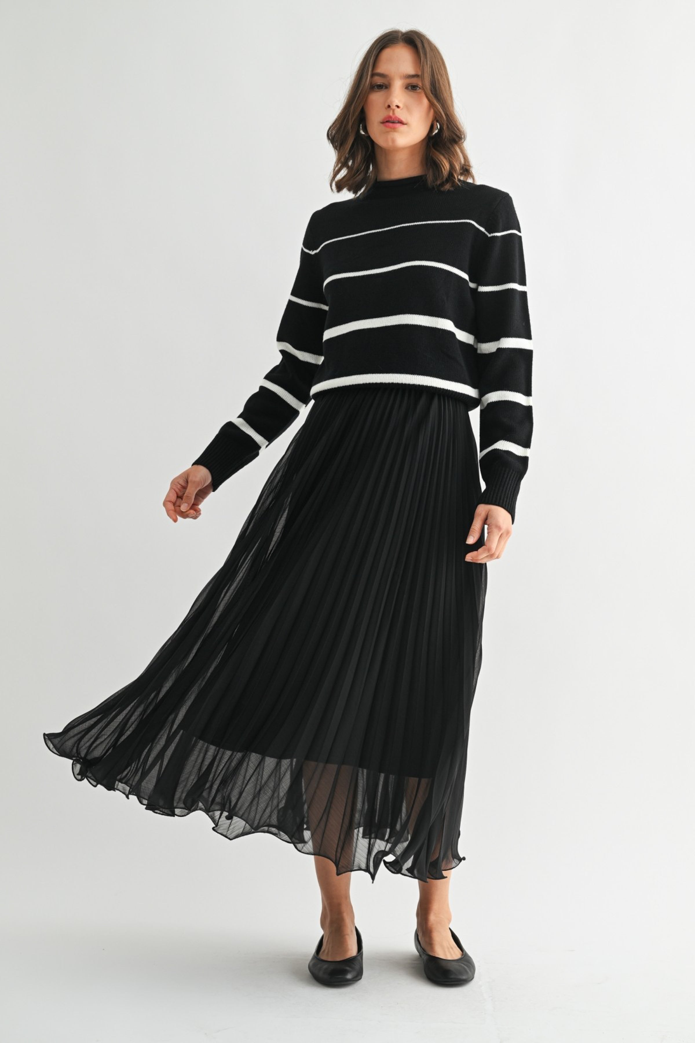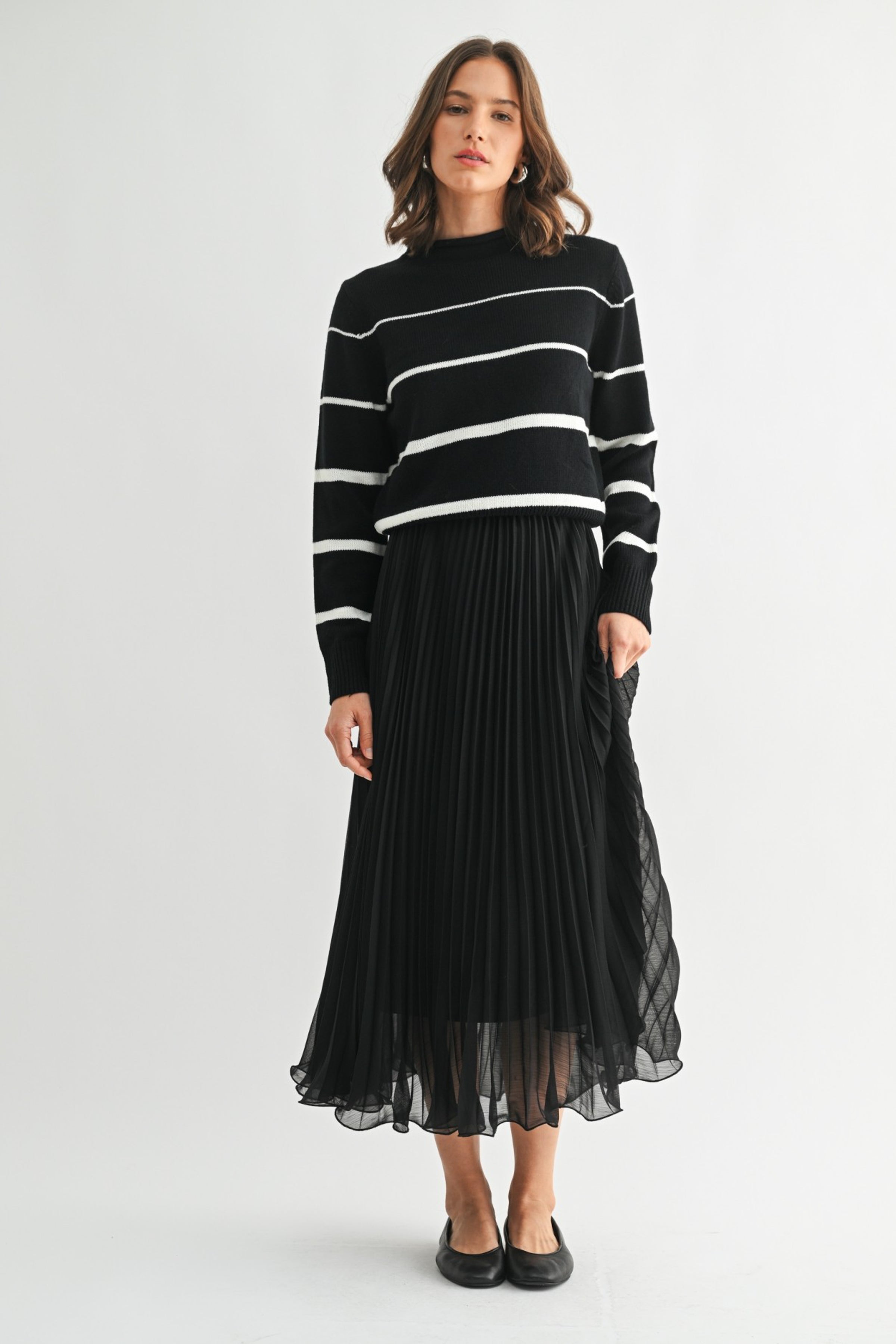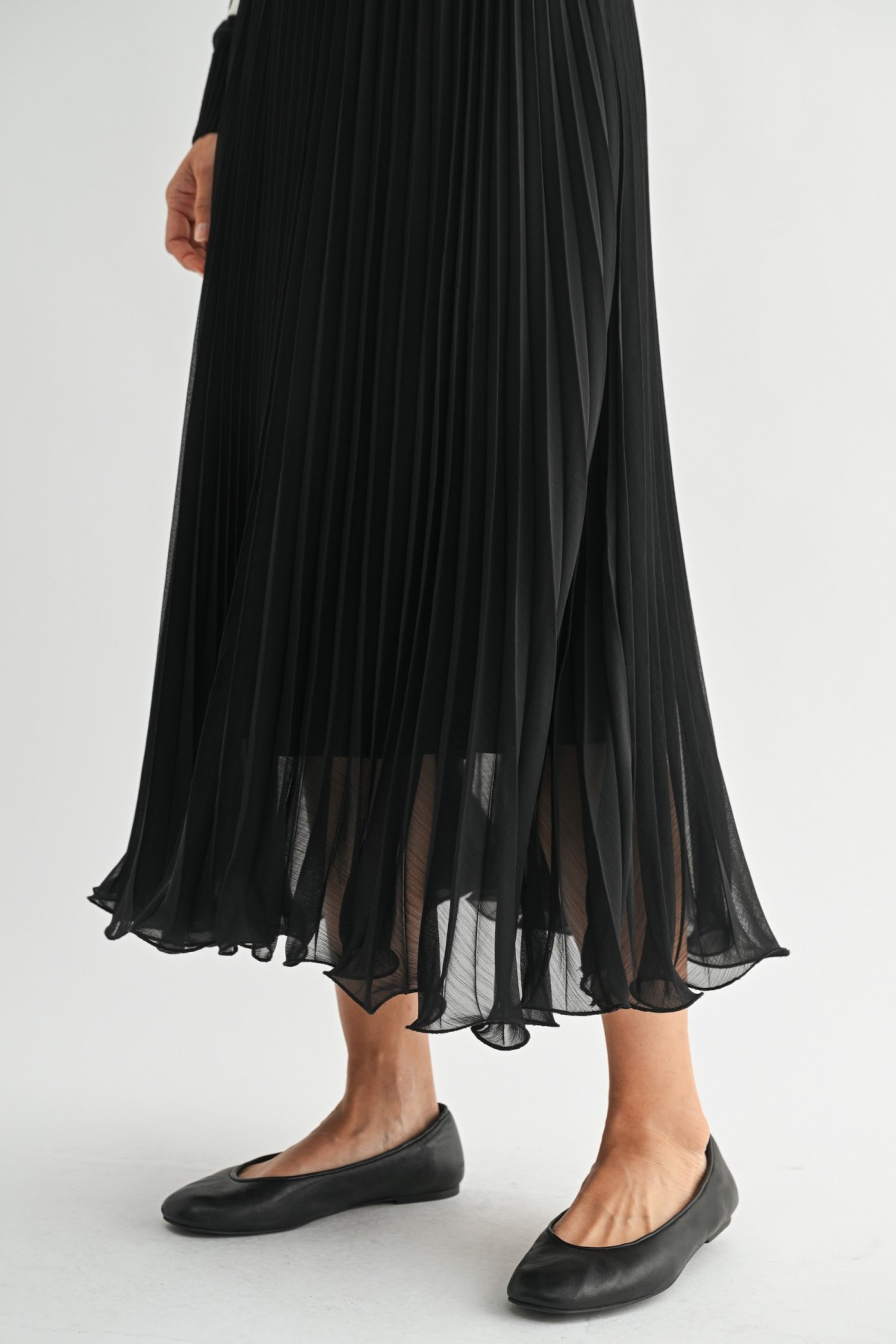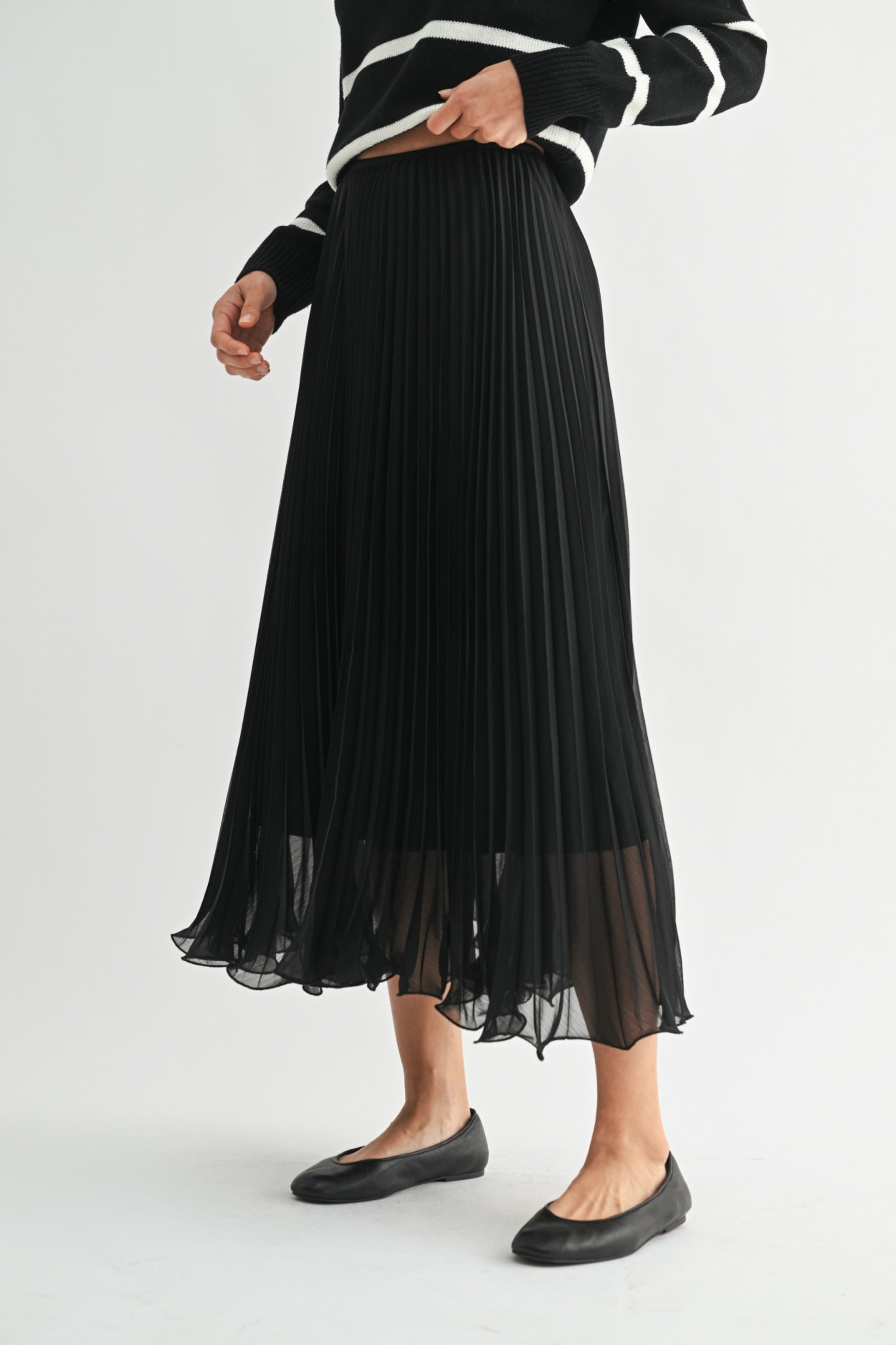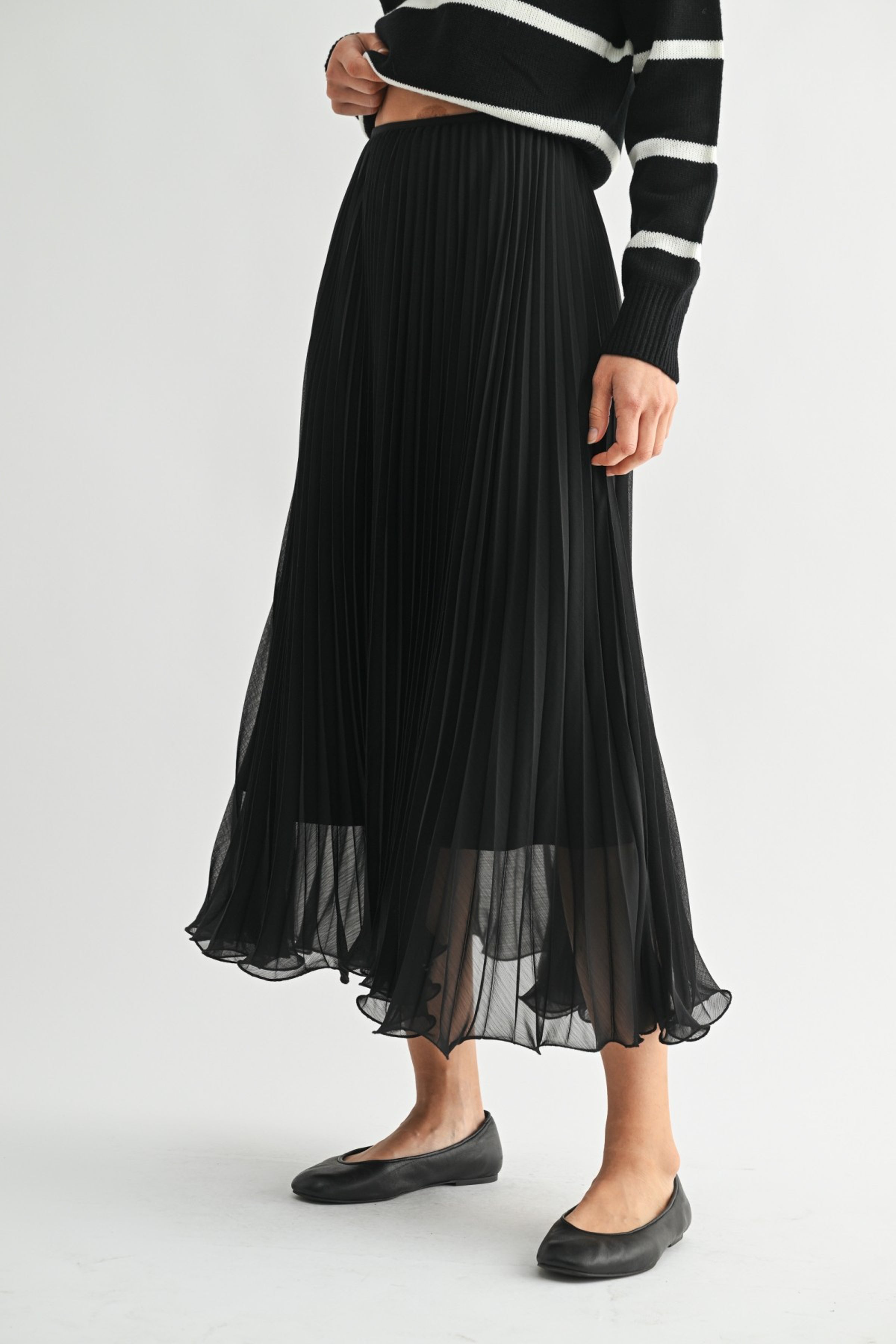 Black chiffon pleated midi skirt.